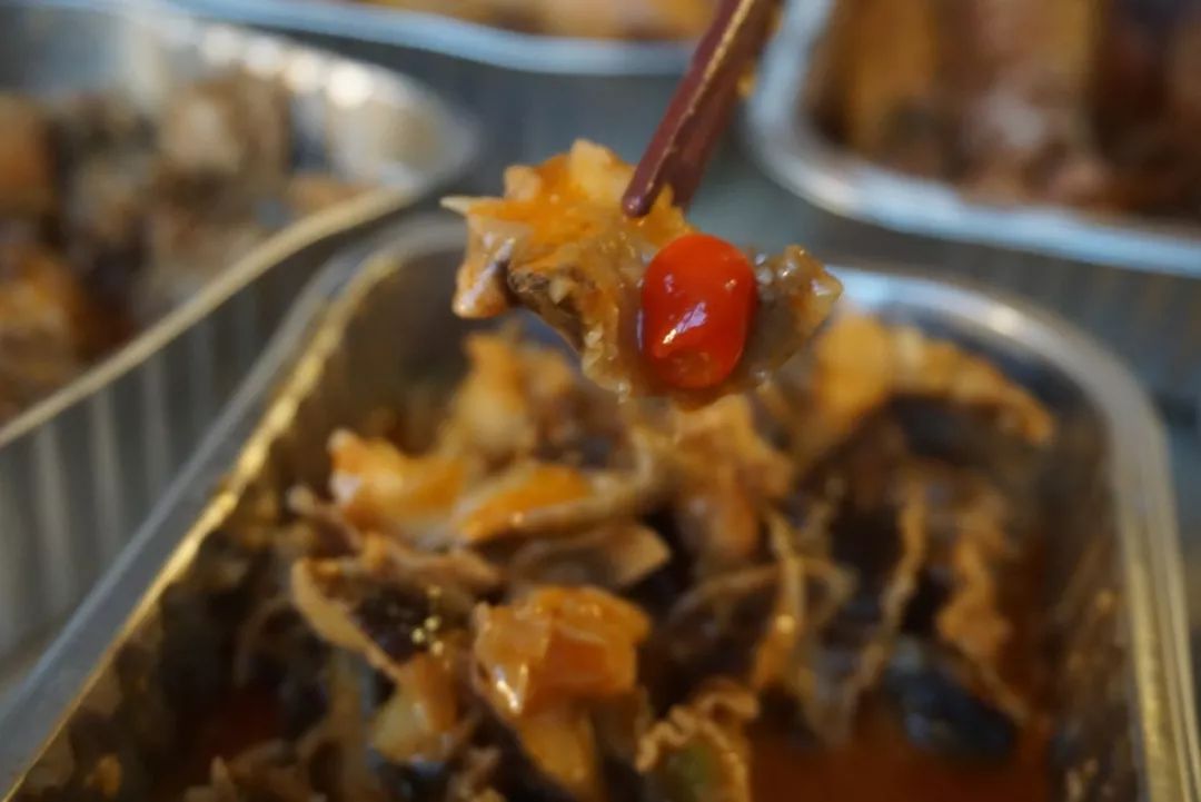裹著湯汁的魷魚咬起來嘎嘣脆,一口一個的停不下來。